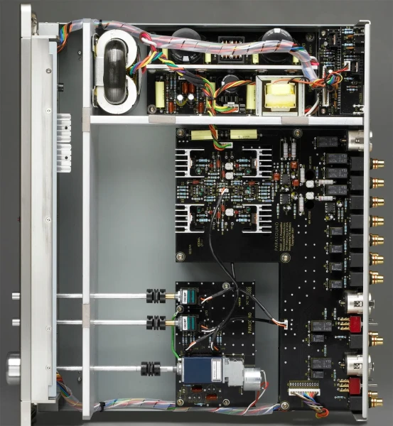 P is a dual‑mono, all‑analog line stage built to disappear: direct DC servo‑coupled (no capacitors in the signal path) with hand‑matched complementary FETs, a premium four‑gang motor‑driven volume control plus TKD left/right trims, and both balanced XLR and RCA I/O (including an inverted RCA out). It adds a true Home Theater Bypass that locks out volume for seamless L/R integration with a surround processor, and it’s integration‑ready with 12V triggers, IR, and RS‑232. Praised by reviewers “Then I began to appreciate how much it did right and how little it did wrong.” — Stereophile (John Atkinson). “Abilities to create a realistic soundstage and convey the recording space were unsurpassed, in my experience.” — SoundStage! Ultra. “Sound quality is superlative—refined, accurate, and capable of extraordinary resolution.” — Home Theater Review.